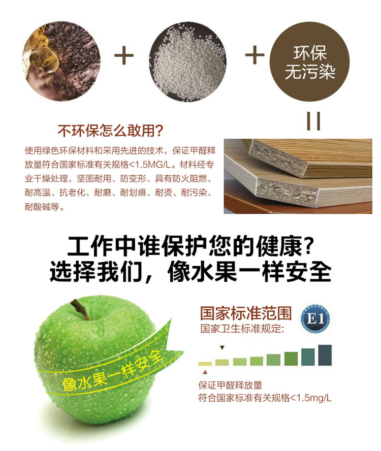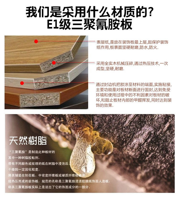 基 材:綠色環(huán)保E1級(jí)優(yōu)質(zhì)防火板(三聚氰胺板),抗性硬度良好,具有防火